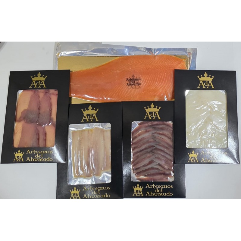 Selección de productos ahumados de la manera tradicional con madera de haya.